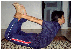 kaki. Angkat seluruh tubuh, titikkan berat tubuh pada pusar. Tarik leher dan